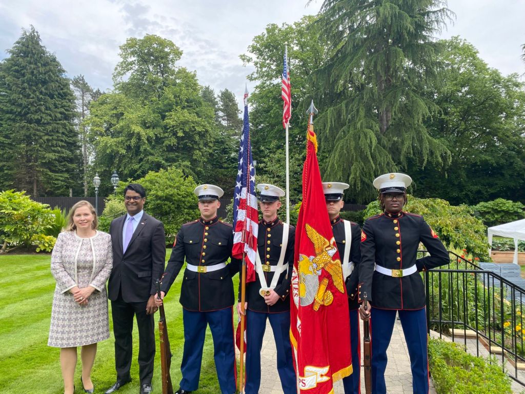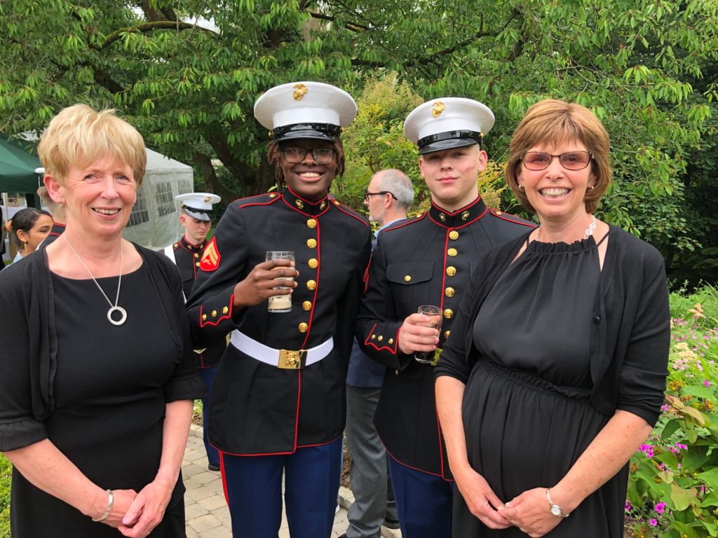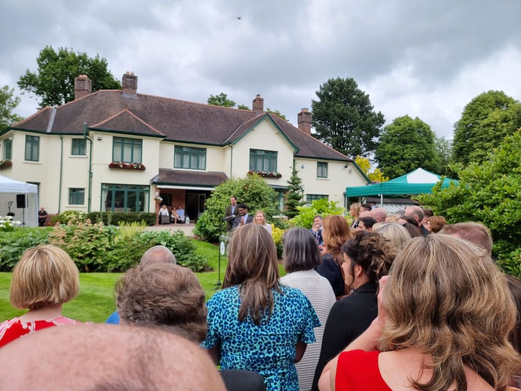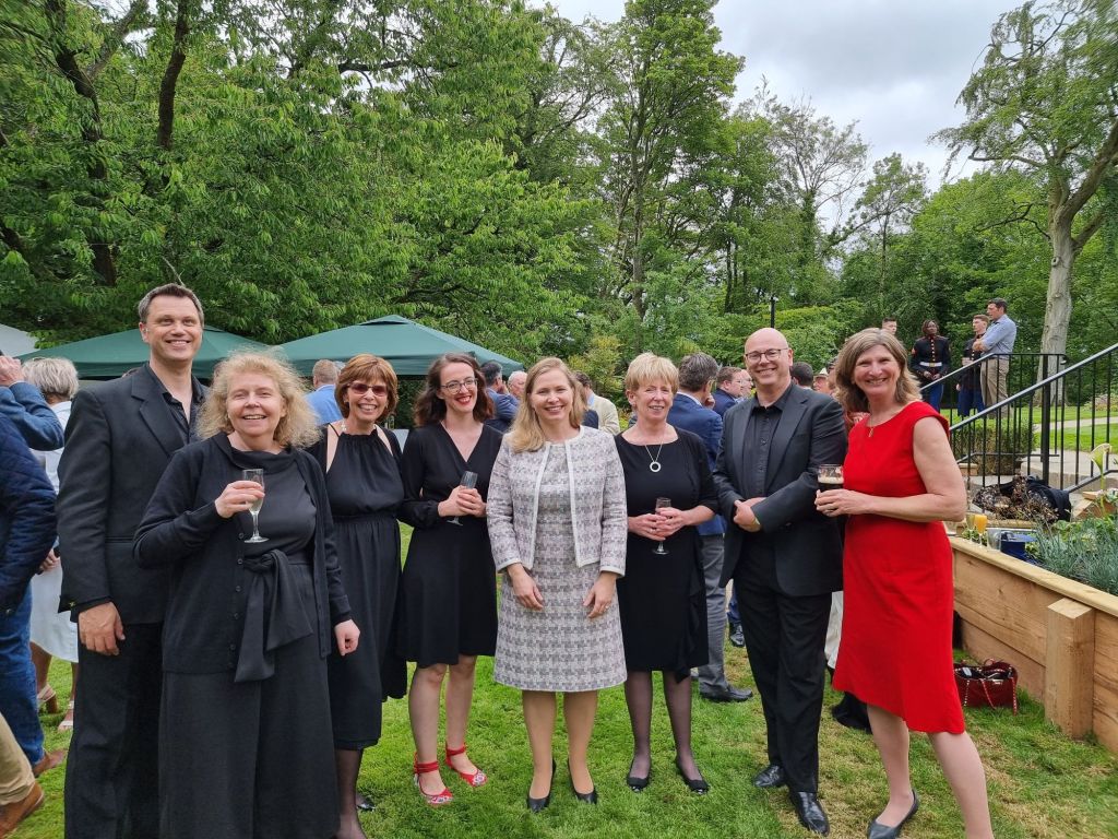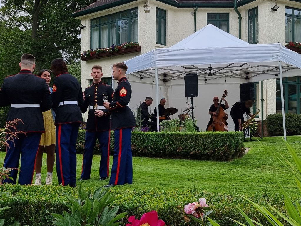 On 24 June 2022, by special invitation a small number of us performed at the US Consul’s residence in Belfast, with the honour of singing the US National Anthem. We received a remarkable welcome from the US Consul himself and played a focal role in this thank you to the NHS, singing to the US staff and nearly 500 public representatives and healthcare staff guests as well as assembled Marines at attention with their standards and their national flag. The scene is one that we will not forget quickly, and also introduced our choir to many health service and civic leaders, including the Minister for Health. Many thanks to Paul McGarvey for his work on this event.